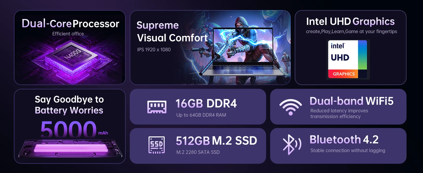 15.6″ Laptop Computer Intel Celeron N4000 Windows 11 Laptops Gamer 16GB DDR4 1TB SSD Fingerprint Unlock Office Study Notebook PC