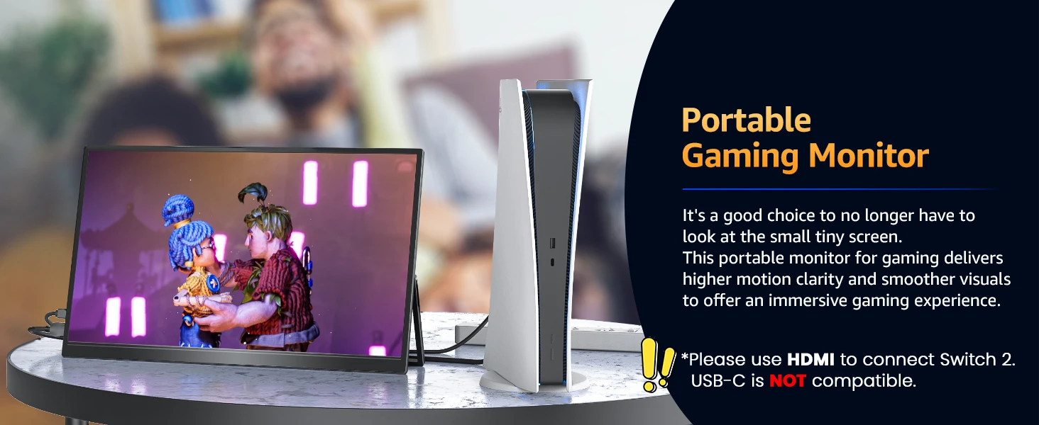 Most computer displays do not have USB-C port, but this 18-inch PC monitor has type-c and mini HDMI interface, which can easily realize signal transmission with various devices, such as Computer, Laptop, Phone, PS4, PS5, Switch ,Tablet, Camera, Camcorder, DVD player, etc.