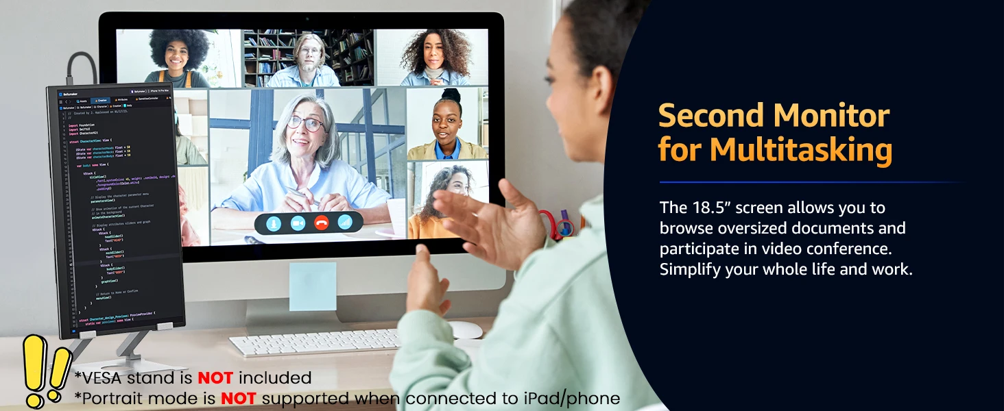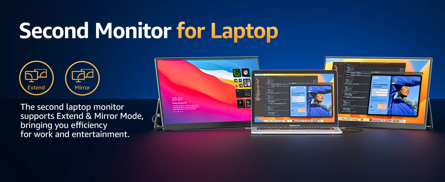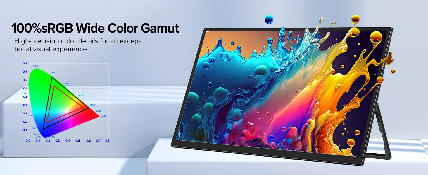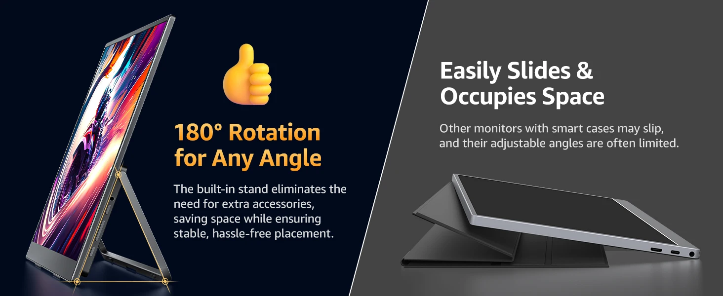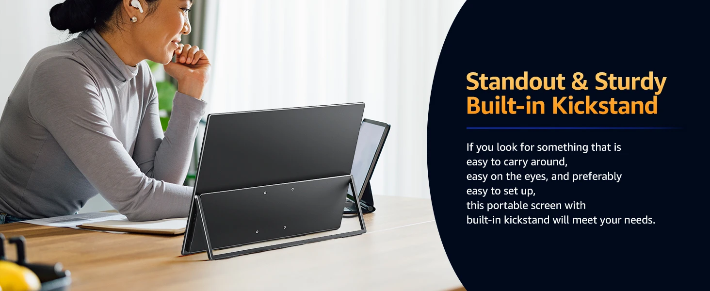 Weighs only 1.58 kg (3.47 lbs) and is as thin as 7 mm (0.28 inch), lighter and thinner than other desktop monitors. The integrated design of the body is very convenient to put in your bag, PC monitor is more convenient to carry and saves space than monitors with a stand base.