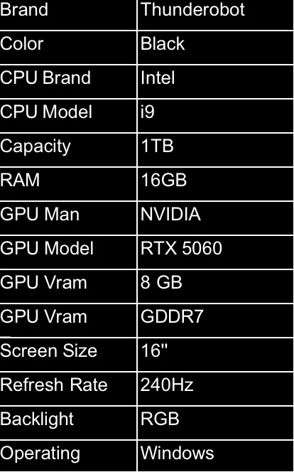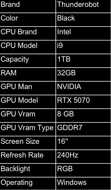 1. Thunderobot ZERO16 Intel Core i9-14900HX 1TB PCIe 4.0 SSD 32GB DDR5 5600MHz RAM Nvidia RTX 5070 8GB GDDR7 16″ 2.5K (2560×1600) 240Hz 100% DCI-P3 – Windows 11 Home Hummingbird Display Wi-Fi 7 Per-Key RGB Black Gaming Laptop (ZERO16-i9149HX57E1Q240ARB)
